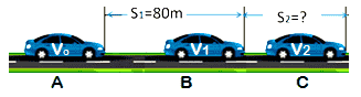 Dari A ke B:\[\\v_1^{2}=v_o^{2}+2aS\\10^{2}=15^{2}+2a(80)\\100-225=160a\\a=-\frac{125m}{160s^{-2}}\]Dari B ke C:\[\\v_2^{2}=v_1^{2}+2aS\\0^{2}=10^{2}+2\left (-\frac{125}{160} \right )S_2\\-100=-\left (\frac{250}{160} \right )S_2\\S_2=\frac{1600}{250}=6,4m\]